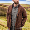 Full Zipper Block Design Knitted Cardigan Sweater with Soft Brushed Flannel Lining
